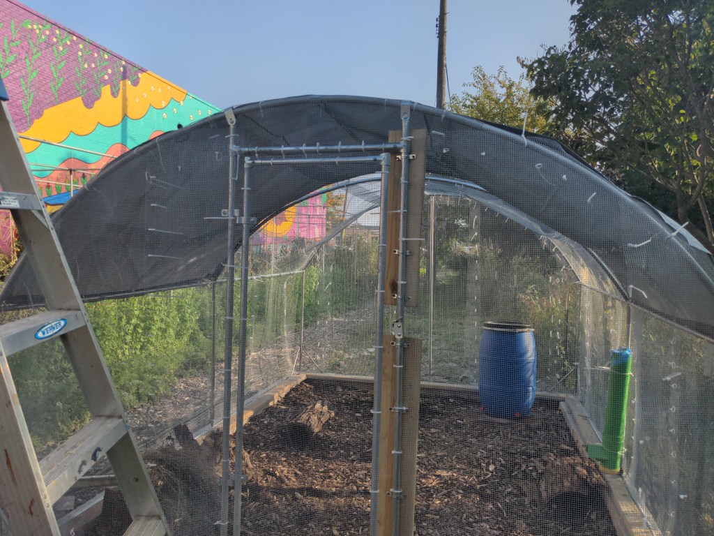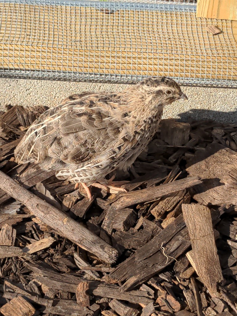 A year later, I began volunteering at El Paseo. El Paseo’s motto is “empower through nature” and one of many great things about the garden’s collaborative spirit is that volunteers and leadership are very supportive of individual projects that expand the garden’s scope. Many of our most popular programs, like beekeeping and sound healing, started as individual initiatives that grew into more formal offerings. Once I got my footing at the garden and demonstrated that I was reliable (volunteering for about a year), I mentioned my interest in raising quail after one of our volunteer days and garden leadership was immediately supportive of the idea. We came up with a plan and a budget, found a friend nearby who was kind enough to donate birds from her flock (thanks Amanda!), and over the course of a month or two, we built their cage during our Sunday volunteer days. In September 2023, we welcomed our initial flock of birds, and the El Paseo Quail Qu-oop has been going strong ever since!