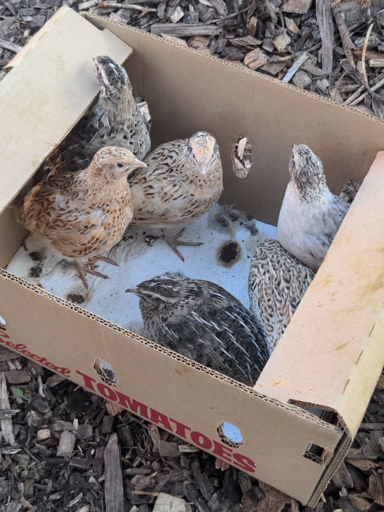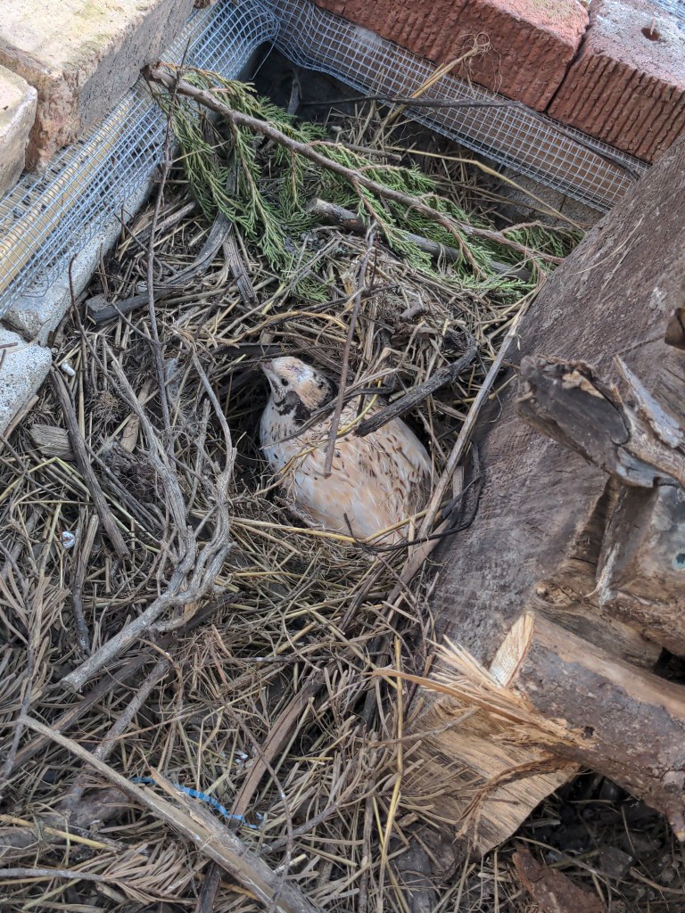 We currently have 5 birds, but we plan to scale up considerably during summer 2024 with the goal of ending the year with at least 25 birds sourced from friends, neighbors, and volunteers who are interested in incubating our existing quail eggs. Currently, we plan to offer quail eggs as part of the garden’s weekly U-pick in exchange for donations, but our long term vision is to transition to a cooperative (qu-operative) model where, in exchange for eggs, volunteers pay a small fee every month to cover food and maintenance while sharing responsibilities for caring for the birds.
