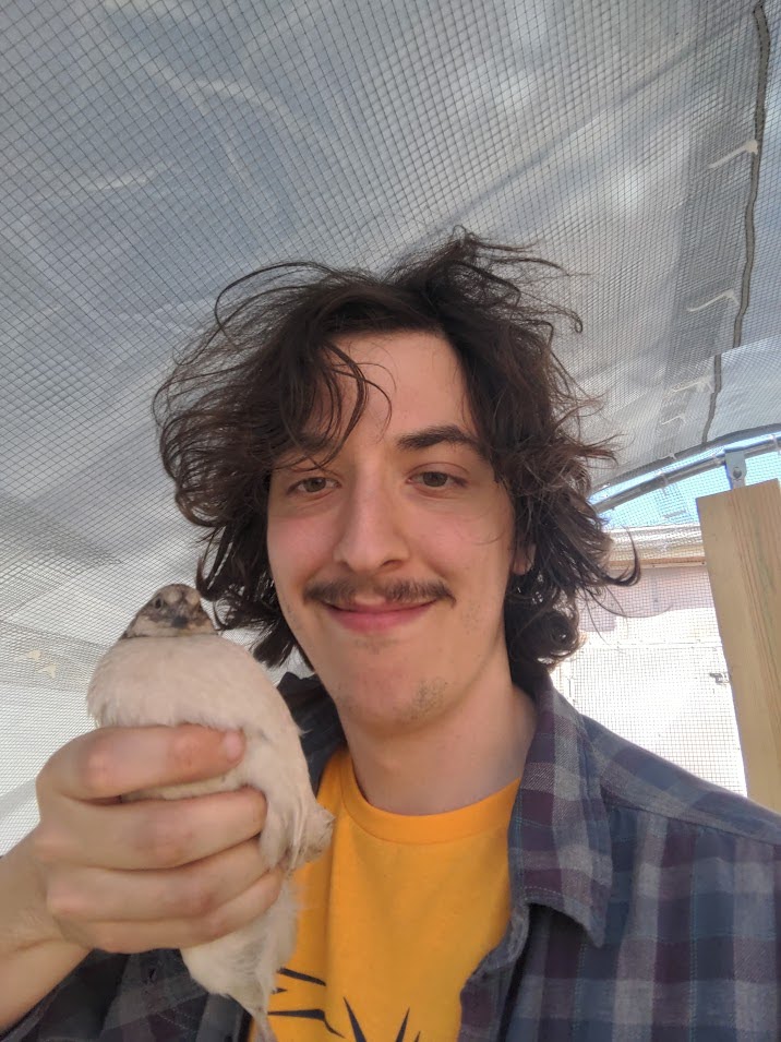 Hi! My name is Paul Rizik (he/him), I’m the main quail keeper here at El Paseo. My journey with quail started in 2021. I was talking to my boss, who happened to live on a farm, about how I was interested in homesteading chickens but that I couldn’t do it because I lived in an apartment in the city. I had only a vague awareness of what quail were at the time, but my boss brought them up and pointed out that they’d be perfect for my situation. After that, I started doing research and decided that my boss was right. Compared to chickens, quail are smaller, quieter, and require significantly less room to thrive. Our quail are of the Coturnix genus meaning they spend most of their time foraging for seeds & food on the ground, plus they’re winter hardy and lay eggs once a day, just like a chicken would.