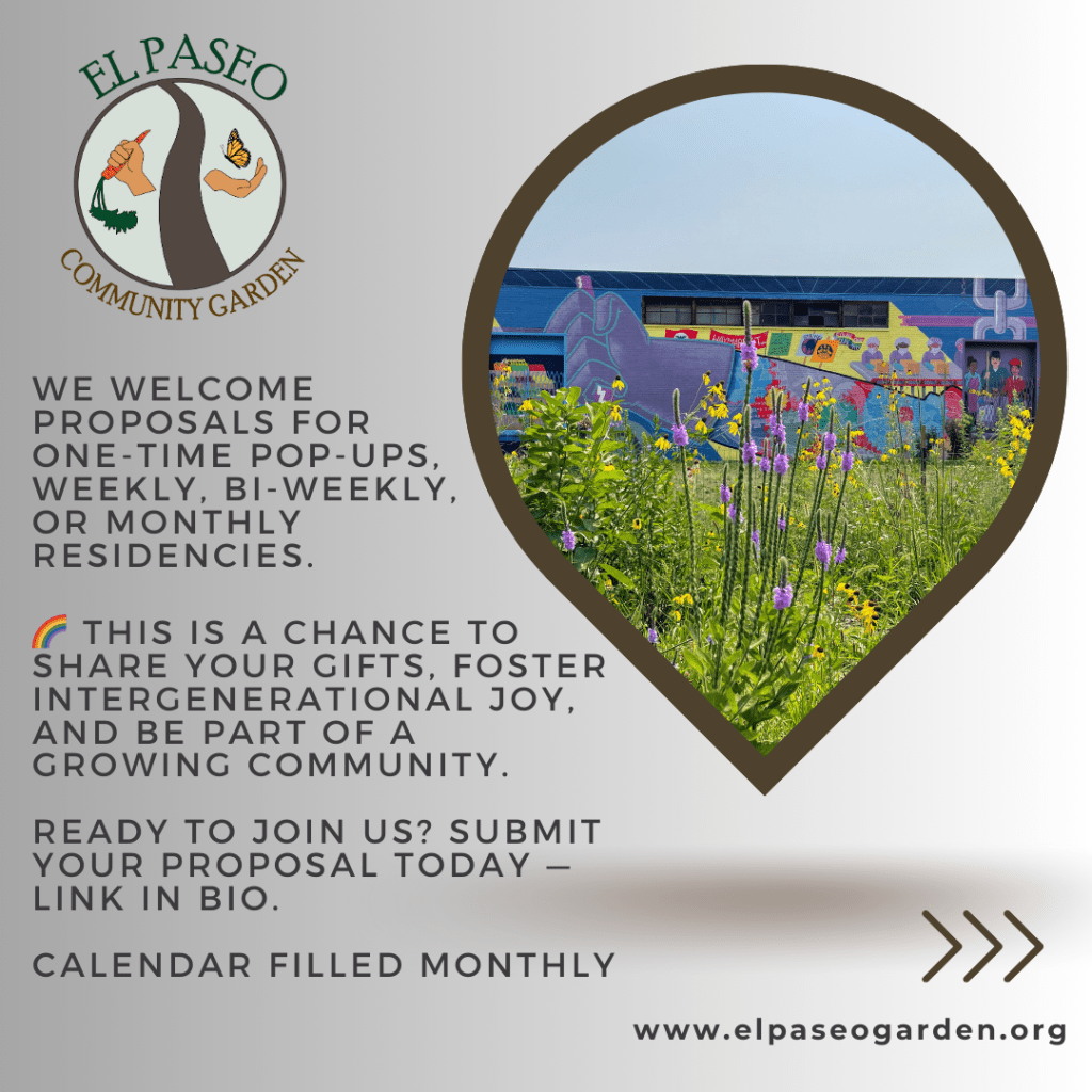 #elpaseogarden#empowerthroughnature#pilsenchicago#ResidencyCall#CommunityGarden#FacilitatorsWanted#YogaInTheGarden#SoundHealing#SeniorArt#FamilyWorkshops#WellnessPopUps#MarketVibes#SomaticHealing#HarvestFestival#communityprogramming