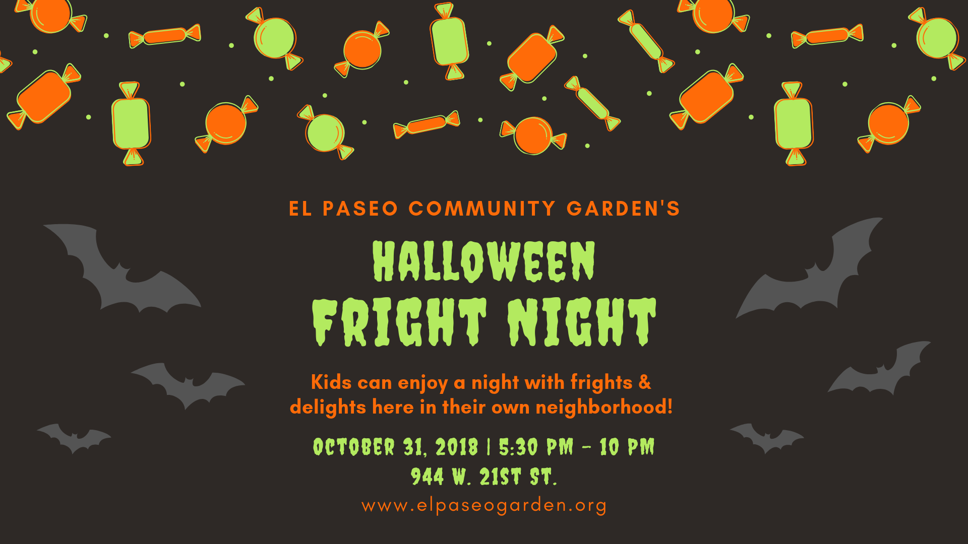 Bring you kids to trick-or-treat at our first Halloween event in partnership with community residents, Gabriela Parra and Garrett McGinn!