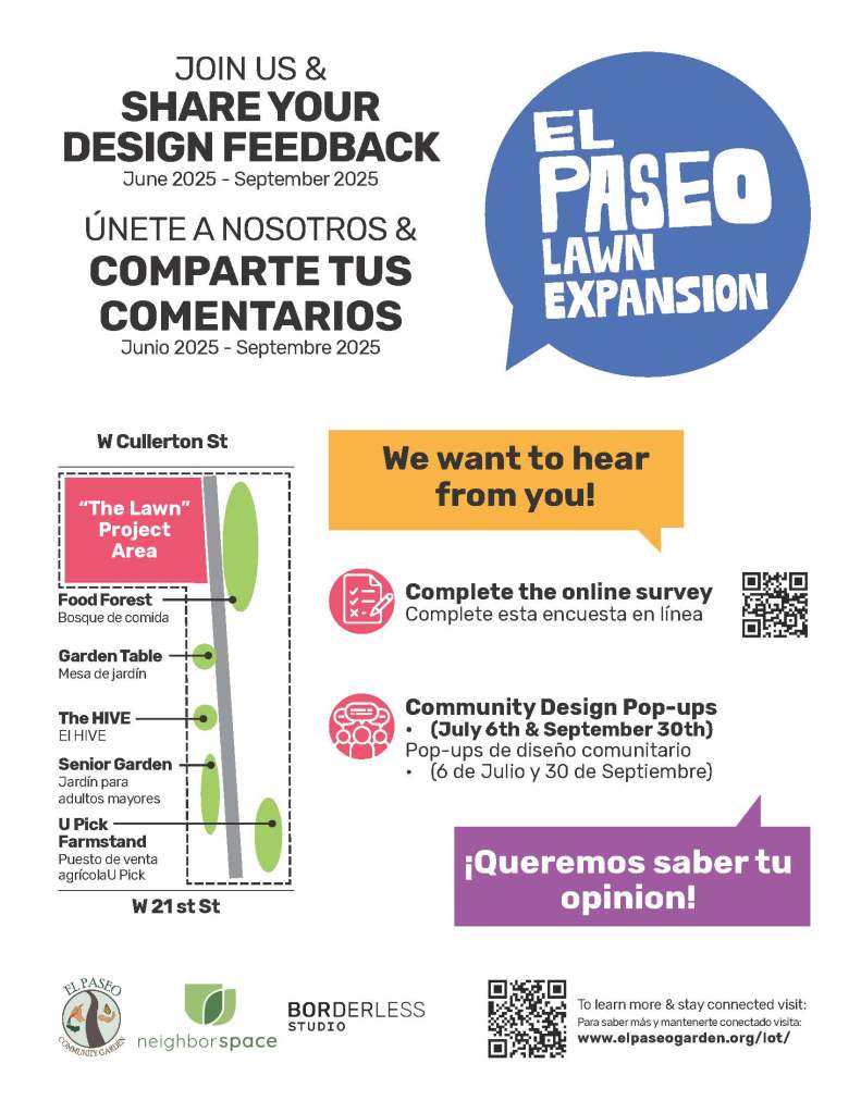 Please Note: El Paseo Community Garden and the Dog Run “El Pawseo” is a community-managed space maintained by volunteers and donations. The land is owned by the non-profit community land trust, NeighborSpace.